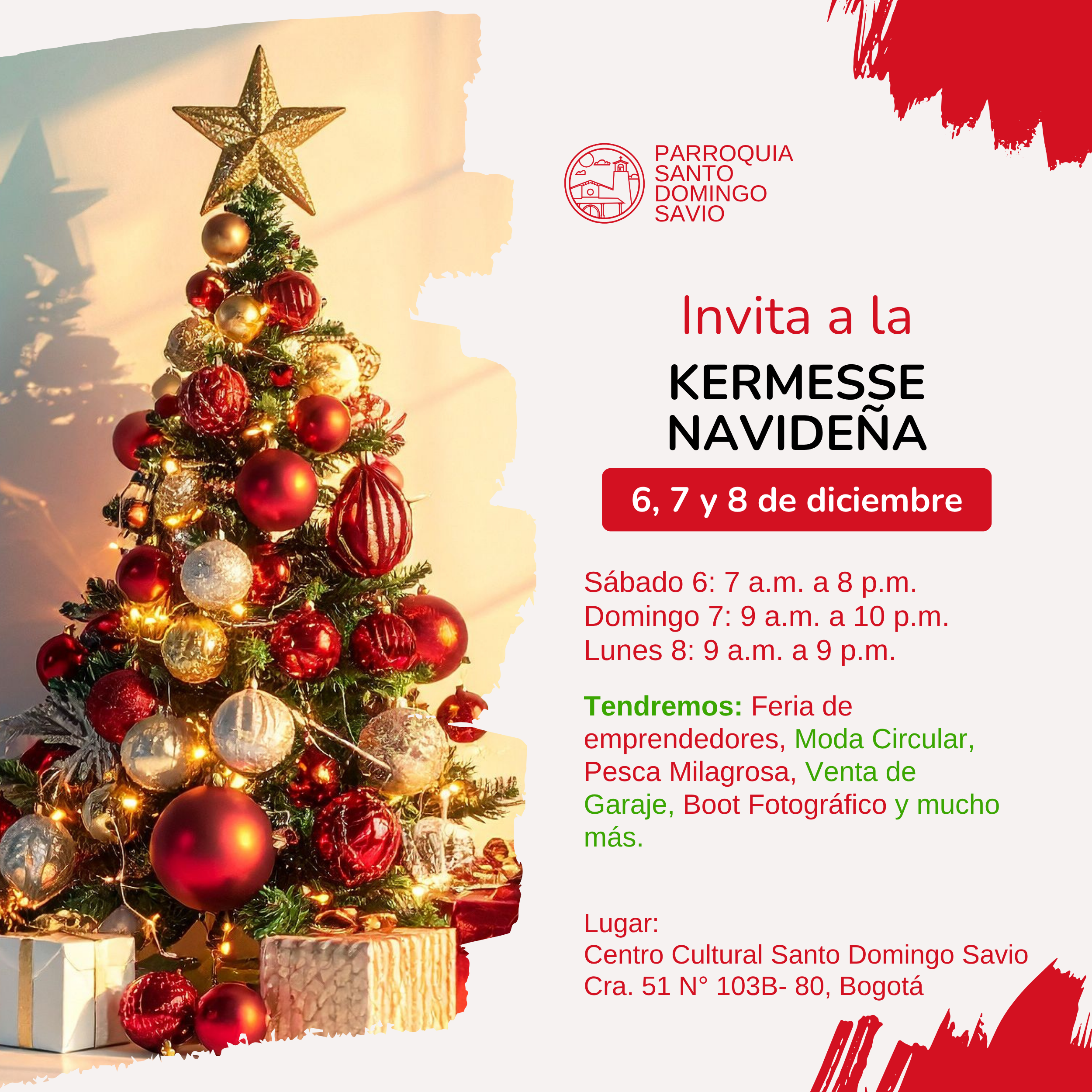 Disfruta de la kermesse navideña, del bazar que organizamos para dar inicio a la época de navidad. ¡¡Conoce el Centro Cultural Santo Domingo Savio!!
