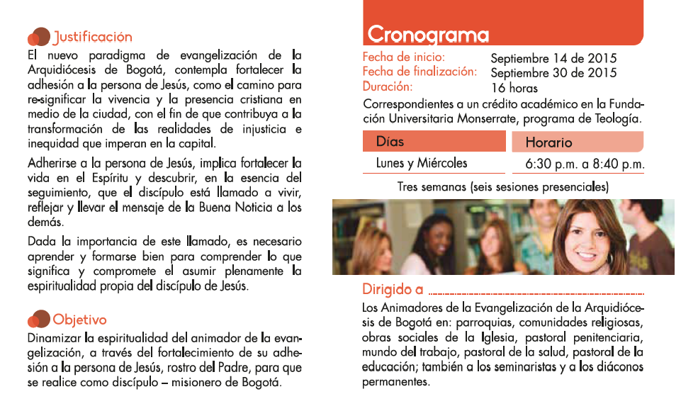 Centro de información Yo quiero Noticias Boletines Eventos Artículos Canonización Mensajes del Señor Cardenal Cartas pastorales Homilías Mensajes La voz del pastor Documentos del Vaticano NoticiasCurso Espiritualidad del discípulo misionero12 de Agosto de 2015 Like 0 Dislike 0 Noticias relacionadas Archivo del Plan de Predicación - 2024-2025 Tiempo para nutrir, cuidar y testimoniar la fe La Arquidiócesis de Bogotá celebró la ordenación de nuevos sacerdotes y diáconos
