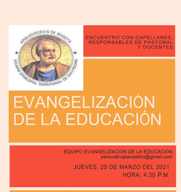 Por medio de la virtualidad el jueves 25 de marzo se realizará el encuentro con capellanes y responsables de la educación en la fe de los colegios del territorio. Esta reunión tiene el propósito de fortalecer las relaciones de cercanía y apoyo mutuo ante la desafiante misión de una educación integral que responda a esta nueva realidad traída por la pandemia.