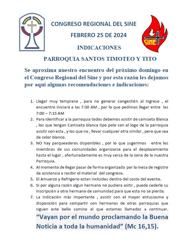 NoticiasIndicaciones Congreso Regional del SINE22 de Febrero de 2024Se aproxima nuestro encuentro del próximo domingo en el Congreso Regional del Sine y por esta razón les dejamos por aquí algunas recomendaciones e indicaciones Like 1 Dislike 0